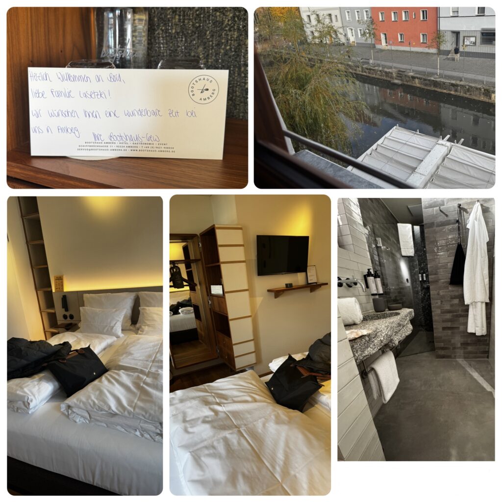 Der Anlass für die Reise war der 70. Geburtstag einer lieben Freundin, die in der Nähe wohnt. Die Familie organisierte den gesamten Wochenendablauf und wählte für den gemeinsamen Aufenthalt das Hotel Bootshaus zur Übernachtung – eine wunderbare Wahl! Die direkte Lage des Hotels ist an der Vils und hat einen Biergarten über dem Fluss, sehr interessant!