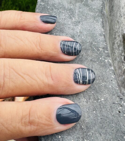 Und wie so oft war ich vom neuen Design so begeistert, dass Lidia gar nicht anders konnte, als wieder etwas Besonderes zu zaubern – dieses Mal mit Spider Gel auf zwei Nägeln.