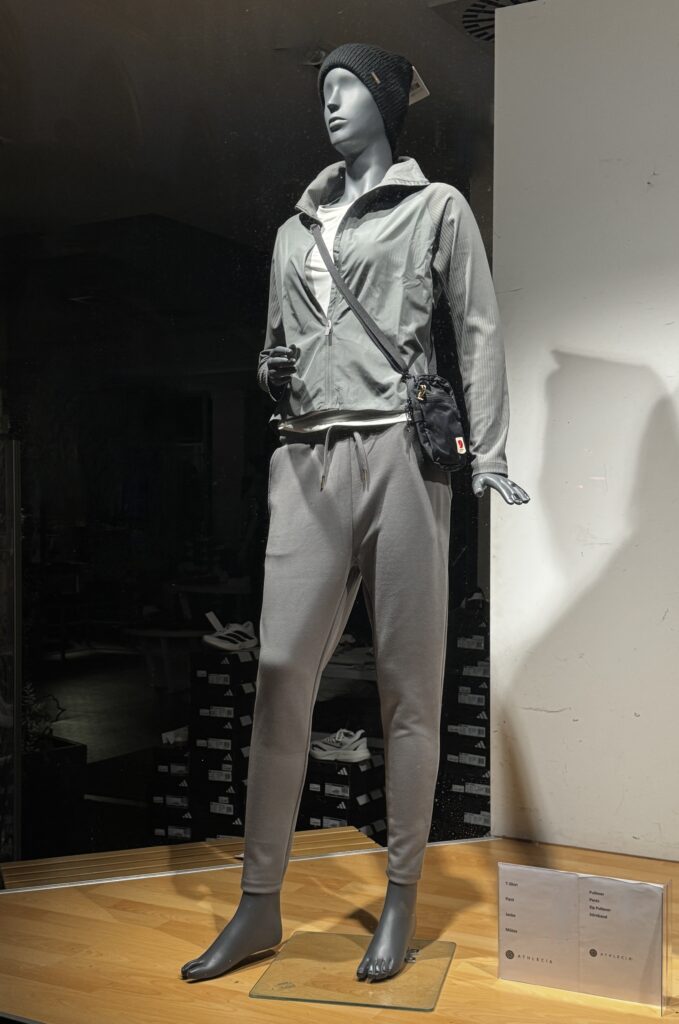 Meine heutige Schaufensterpuppe zeigt sehr schön, dass Stil nicht an der Ladentür endet. Der Look wirkt modern, vielseitig und überraschend elegant, ohne dabei auf Komfort zu verzichten.