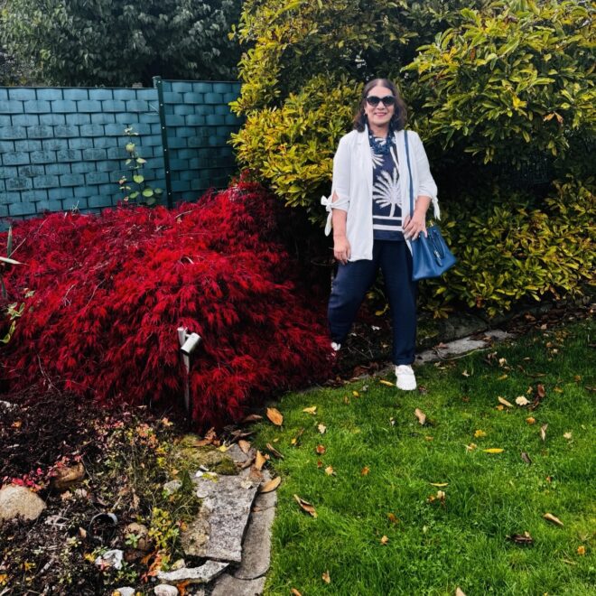 Letzte Woche habe ich mich mit meiner lieben Freundin Monica getroffen – endlich wieder, im warmen Herbstlicht ihres Gartens. Noch war es warm genug, dass ich keine Jacke brauchte – die perfekte Gelegenheit also, einen meiner Lieblingslooks aus dem September noch einmal auszuführen.