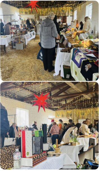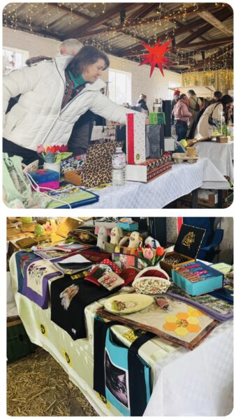 Mein Tisch (und einige andere auch) stand in einer Scheune, und allein das war schon ein kleines Highlight: Stroh auf dem Boden, dieses leicht rustikale Ambiente, dazu die vielen schönen Stände (darunter auch meine Freundin Moni, die mit ihrem wunderschönen Patchwork-Kunstwerken an meiner Seite war) .… es hatte fast ein bisschen was von einem kleinen, versteckten Dorfmarkt.